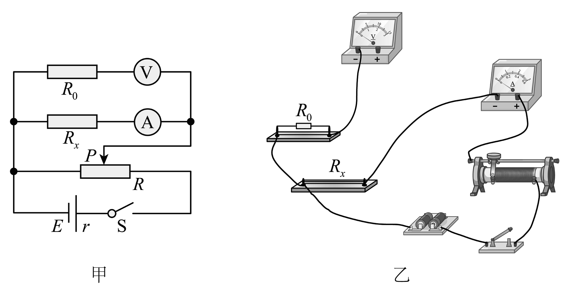 (1)、电压表的量程太小,不满足实验要求,若要改装成量程为15V的电压表,则需串联一个阻值为的定值电阻。(2)、按图甲所示的电路图设计实验,则滑动变阻器应选用(选填“”或“”)。(3)、根据图甲用笔画线将图乙中的实物图补充完整。(4)、闭合开关前,滑动变阻器滑片P应置于最端(选填“左”或“右”)。(5)、某次实验中电压表读数为1.20V,电流表读数为4mA,则测得阻值为。 -