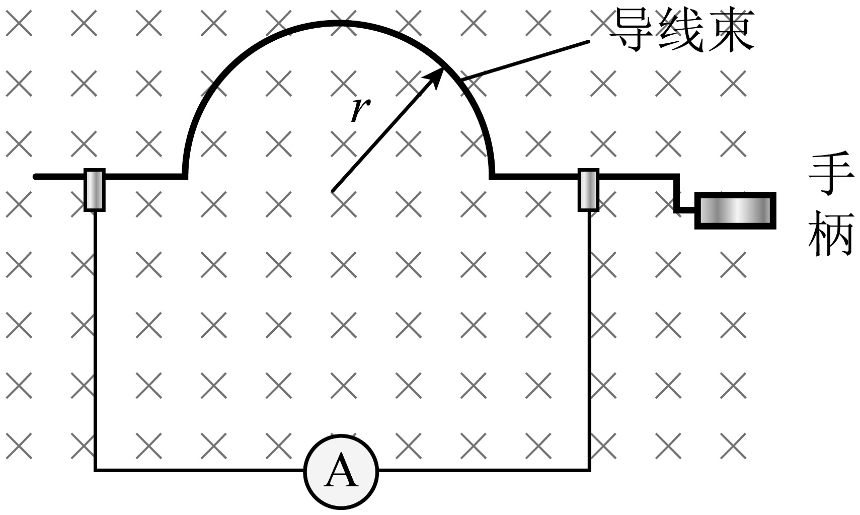 8、如图为手摇式发电机,当手握手柄使导线束在磁感应强度为的匀强磁场中以角速度匀速转动时,产生的感应电流随时间变化规律的表达式为 , 其中称为交流电流的峰值。如果转动频率减半,磁感应强度增加一倍,其他条件不变,则下列表达式正确的是( )A、 B、 C、 D、