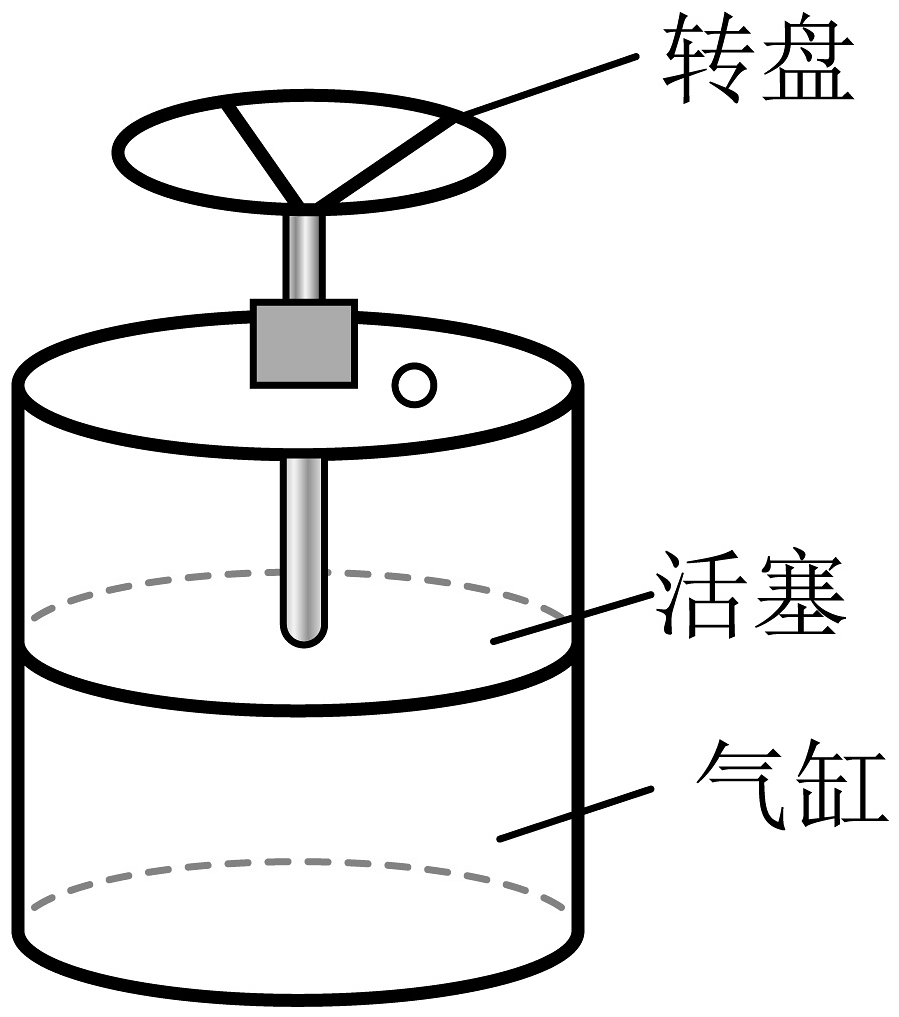 1、如图所示为一气缸示意图,由圆柱形气缸、活塞、转盘组成。活塞与转盘通过一杆相连,通过转动转盘可带动活塞转动而上移或下移。转盘每顺时针转动一周,活塞便下移高度1cm。在气缸中封闭一定质量的气体,气缸竖直静置时,气体压强为 , 活塞距气缸底部的高度。已知气缸内部横截面积 , 大气压强 , 取重力加速度 , 现将转盘顺时针转动4周,忽略一切摩擦,求(1)、此时气缸内部气体的压强为多大?(2)、若旋转活塞后保持活塞稳定,则需要对活塞在竖直方向施加一个多大的力?