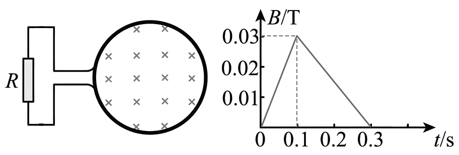 20、饭卡是学校等单位最常用的辅助支付手段,其内部主要部分是一个多匝线圈,当刷卡机发出电磁信号时,置于刷卡机上的饭卡内置线圈磁通量发生变化,由于电磁感应饭卡线圈产生电信号,从而将卡内数据发射出去。设线圈的匝数为n匝,每匝线圈面积均为S,线圈的总电阻为r,线圈连接一电阻R,其余部分电阻不计,通过线圈的磁场方向不变,始终垂直纸面向里,其大小按如图所示的规律变化,则( )A、流经电阻R的电流方向始终不变 B、线圈产生的感应电动势先均匀变大再均匀变小 C、0~0.1s时间内,流经电阻R的电流大小恒定 D、0.1~0.3s的感应电流是0~0.1s感应电流的两倍