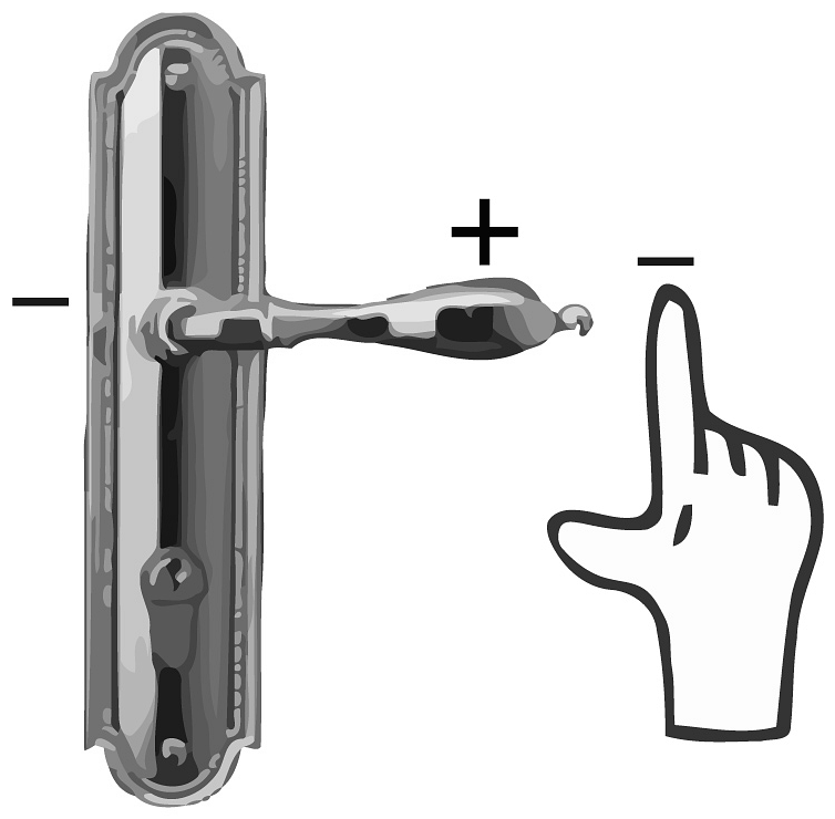 18、在气候干燥的秋冬季节,当手指靠近金属门把手时,有时突然有一种被电击的感觉,这是静电现象。这是因为运动摩擦使身体带电,当手指靠近门把手时,二者之间形成的放电现象。放电前,若手指带负电,有关金属门把手的两端被感应带电的情况,下列图中标示正确的是( )A、