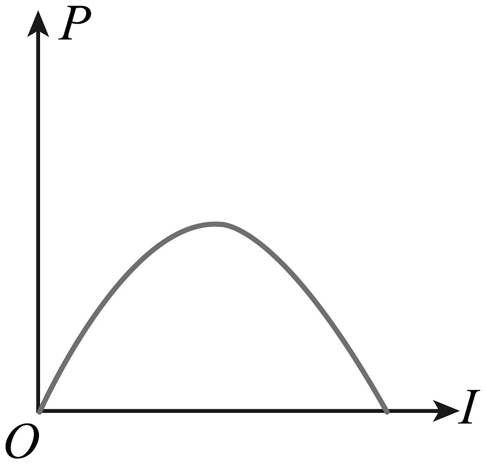 4、如图为某同学研究闭合电路中电源的输出功率随电流变化关系的实验电路(电流表内阻忽略不计),则该同学描绘的输出功率P随电流I变化的图像正确的是( )A、