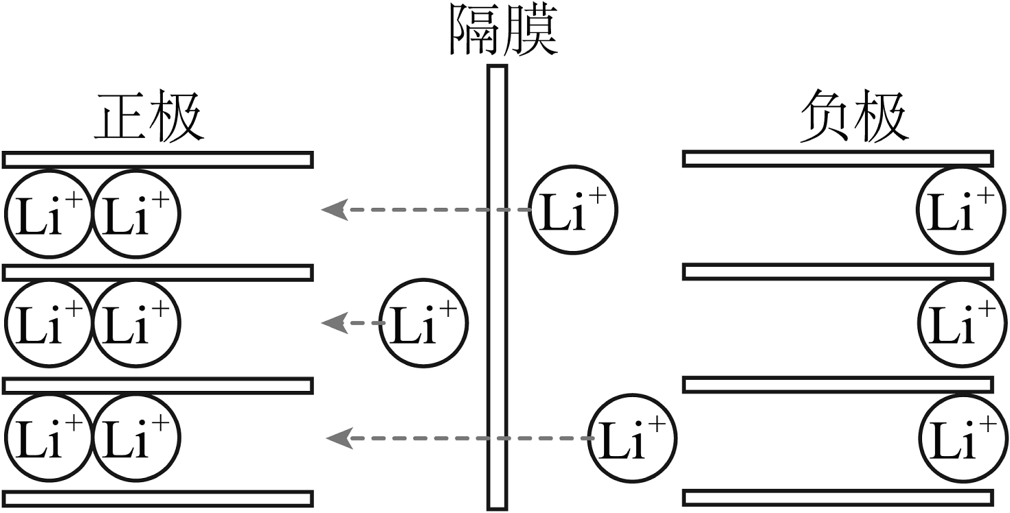 11、锂离子电池主要依靠锂离子(Li+)在正极和负极之间移动来工作,下图为锂电池的内部结构。该过程中Li+从负极通过隔膜返回正极。已知该锂电池的电动势为3.7V,则下列说法错误的是( )A、该电池单位时间,一定将3.7J的化学能转化为电能 B、电源内部每移动一个锂离子,需要消耗电能3.7ev C、“毫安•时”(mA•h)是电池储存能量的单位 D、锂离子电池放电时,电池内部静电力做负功,化学能转化为电能