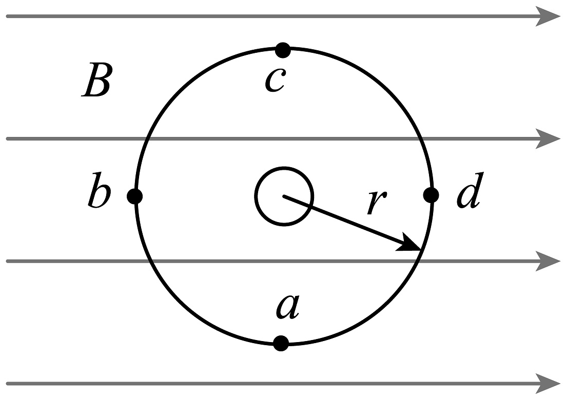 1、如图所示,一根通电直导线垂直放在磁感应强度为的匀强磁场中,在以导线截面的中心为圆心,半径为r的圆周上有a、b、c、d四个点,已知a点的实际磁感应强度为零,则下列叙述正确的是( )A、直导线中的电流方向垂直纸面向外 B、b点的实际磁感应强度为 , 方向斜向右上方 C、c点的实际磁感应强度为零 D、d点的实际磁感应强度跟b点的相同