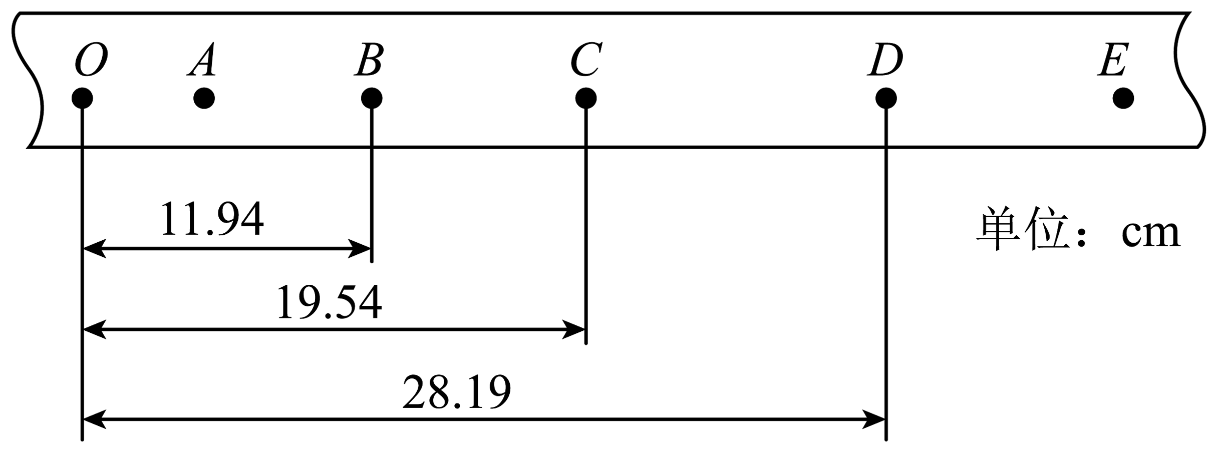 (2)、小明同学将打点计时器接到频率为50Hz交流电源上,实验时得到一条纸带(纸带做匀加速直线运动),纸带上O、A、B、C、D、E为计数点,每相邻两个计数点间还有4个点没有画出。由纸带可知,打C点时小车的速度大小 , 小车的加速度大小。(两空均保留两位有效数字)(3)、若实验时,电源频率略高于50Hz,但该同学仍按50Hz计算小车的速度,则测量得到的小车速度与真实速度相比将(填“偏大”“偏小”或“不变”)。 -