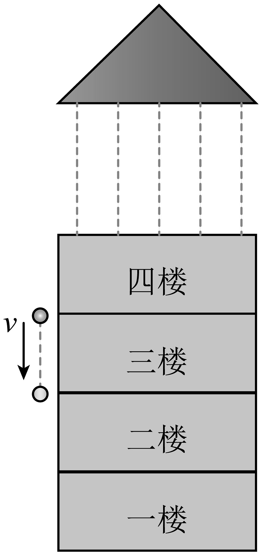 7、高空抛物被形象地称作“悬在城市上空的痛”。为制止这种不文明的行为,某小区物业在每栋楼前架设了一台高清摄像机。在一次高空抛物事件中,查看该摄像机拍摄的一段录像时发现,如图所示,某物体经过三楼所用的时间为t=0.2s。已知物体在空中做自由落体运动,且每层楼的高度为h=3.2m,重力加速度大小为g。求:(1)、物体刚到达三楼住户楼顶时的速度大小v;(2)、通过计算判断物体是哪层楼的住户抛下的。