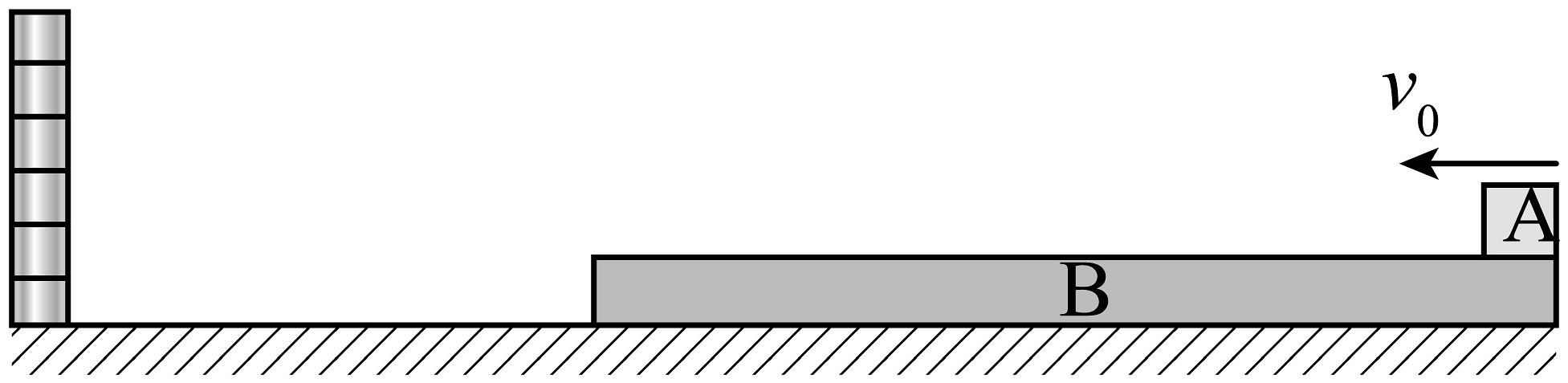 12、如图所示,质量M=4.0kg、足够长的木板B置于光滑水平面上,板左侧有竖直墙壁。现将质量m=1.0kg的小物块A以水平向左的初速度v0=5.0m/s滑上木板。当B与墙壁碰撞后,速度大小不变,方向反向。已知A、B间的动摩擦因数μ=0.2,g=10m/s2。(1)、小滑块A刚滑上木板时,求A的加速度大小aA和木板B的加速度大小aB;(2)、若B的左端与墙壁的距离x=3.0m,已知B与竖直墙壁碰撞前,物块A已与木板B共速。求B从开始运动到刚与墙壁碰撞的时间t;(3)、若B与墙壁之间的距离满足整个运动过程中B与墙壁碰撞两次,且最终A、B停止运动,求整个运动过程中B通过的路程s。