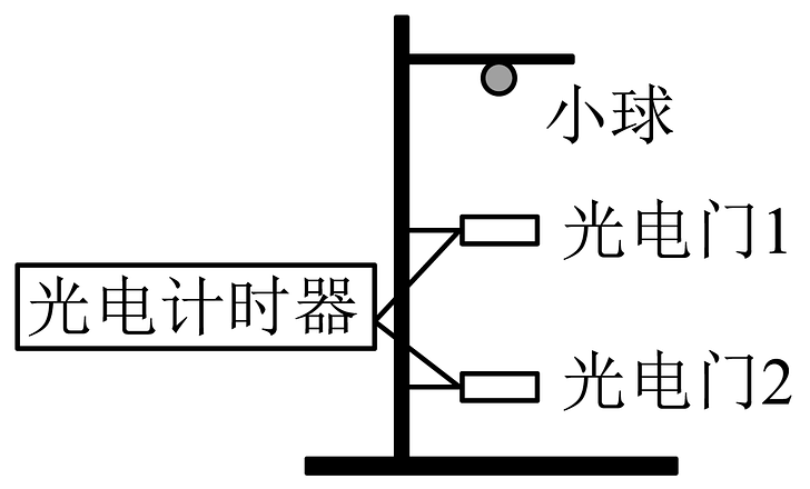 7、某学习小组用如图所示装置测量当地的重力加速度。两光电门固定于铁架台上,光电门1、2与光电计时器相连,小球与光电门1、2在同一竖直线上。