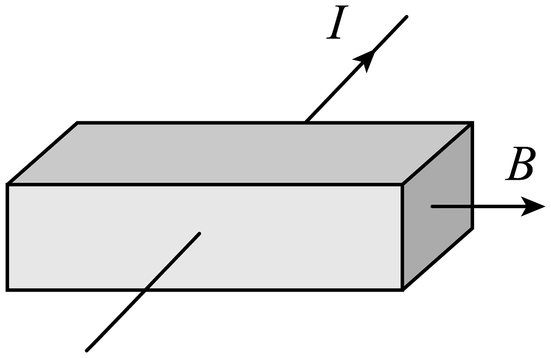 2、如图所示,长方体导体板放在方向与左、右表面垂直,磁感应强度为B的匀强磁场中。电流I是导体板内电子定向运动产生的恒定电流。经过一段时间,电势较高的为( )A、上表面 B、下表面 C、左表面 D、右表面