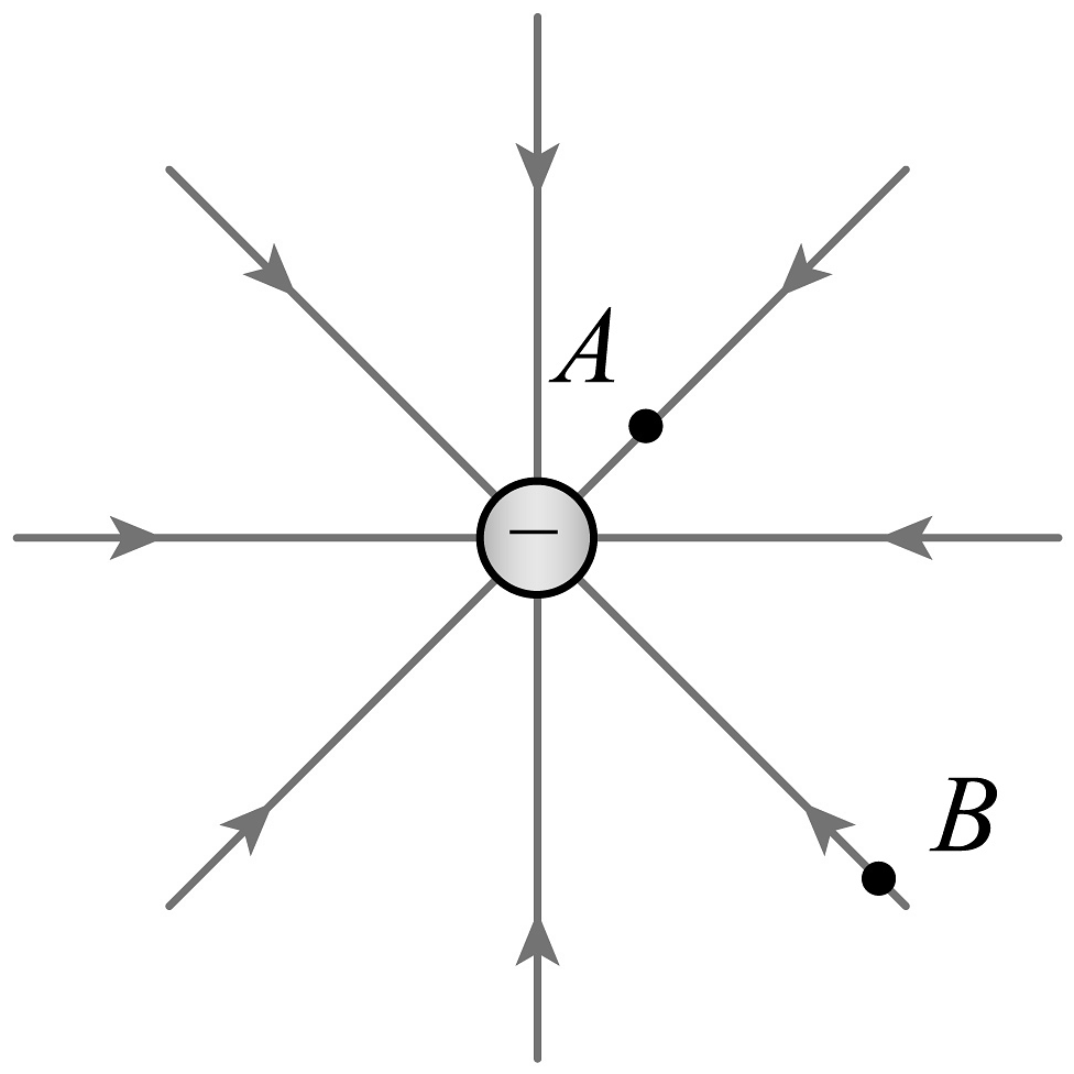 16、一个负点电荷的电场线分布如图所示,A、B是电场中的两点,和分别表示它们的电场强度的大小,分别表示它们的电势,下列说法正确的是( )A、 B、 C、 D、