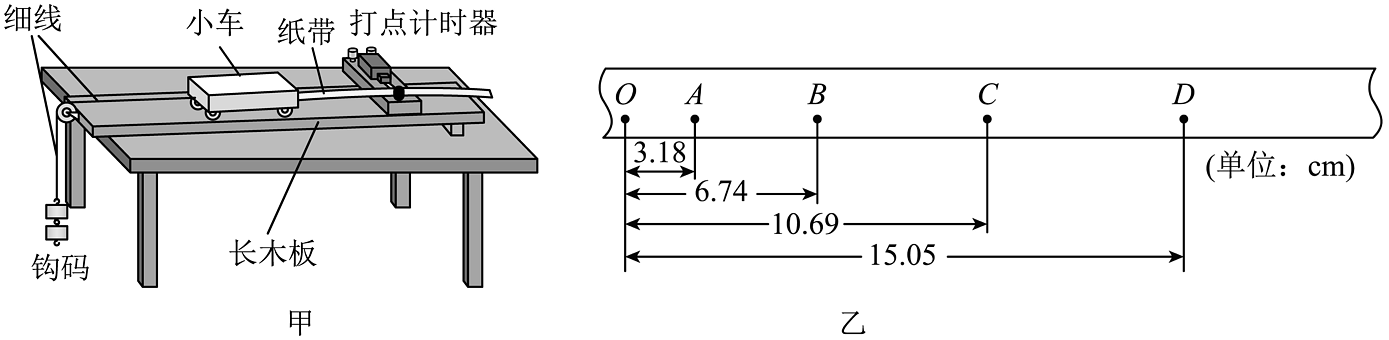 (2)按乙图实验装置得到如图丙所示的纸带,已知打点计时器打点的周期 , 其中、每相邻两个计数点之间还有4个点没有标出,根据纸带提供的数据,算得小车加速度的大小为(计算结果保留两位有效数字)。