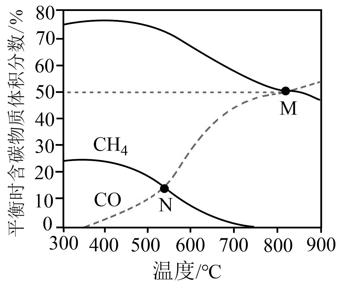 在恒容条件下,按投料比进行反应,平衡时含碳物质体积分数随温度的变化如图所示。