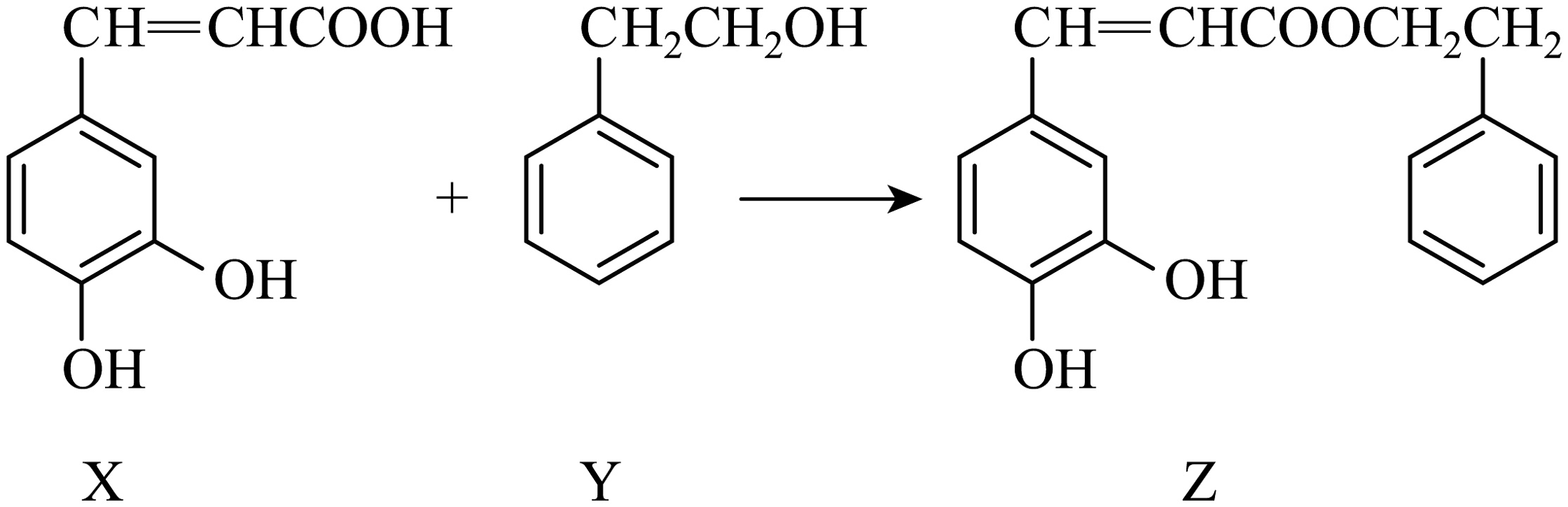 17、化合物Z是蜂胶的主要活性成分,可由X、Y制得。下列说法正确的是A、X分子不存在顺反异构体 B、Z与足量H2反应后的产物中存在3个手性碳原子 C、1molX在常温下与NaOH溶液反应,最多消耗2molNaOH D、X、Y、Z均能与FeCl3溶液发生显色反应