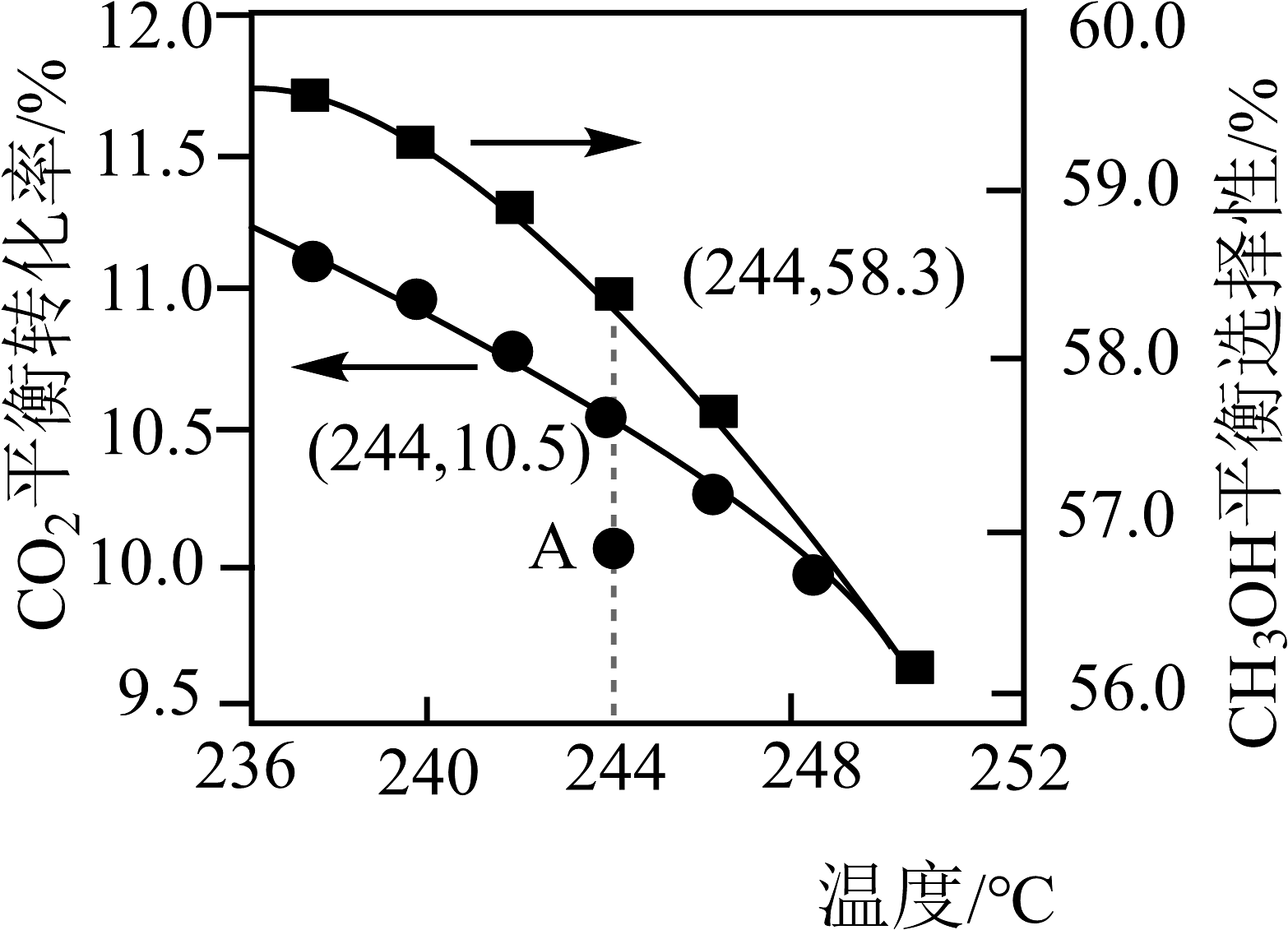 ②244℃时,反应一段时间后,测得CH3OH选择性为56.8%(图中A点),不改变反应时间和温度,一定能提高CH3OH选择性的措施有。