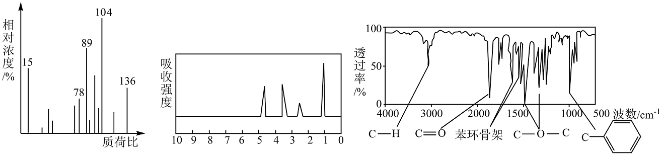 14、将的X完全燃烧生成的和 (标准状况)的 , X分子中只含一个苯环且苯环上只有一个取代基,其质谱图、核磁共振氢谱与红外光谱如图,关于X的下列叙述正确的是A、化合物X的分子式为 B、由核磁共振氢谱可知,X分子中有3种不同化学环境的氢原子 C、符合题中X分子核磁共振氢谱、红外光谱的有机物有1种 D、X分子中所有的原子在同一个平面上
