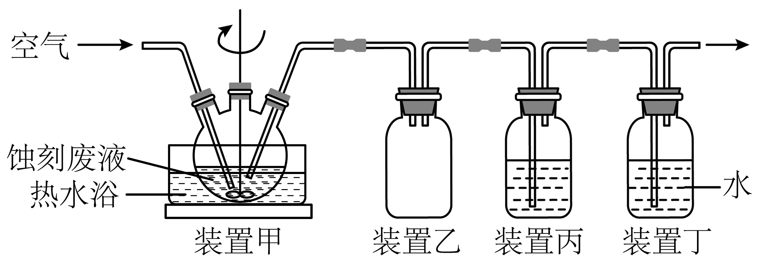 9、以印刷线路板的碱性蚀刻废液(主要成分为)为原料可制取CuO。(1)、取一定量蚀刻废液和稍过量的NaOH溶液加入到装置甲的三颈瓶中,在搅拌下加热反应并通入空气,有产生,反应结束后将装置甲内混合物过滤,得到含NaCl的滤液,将滤渣洗涤,得到CuO。