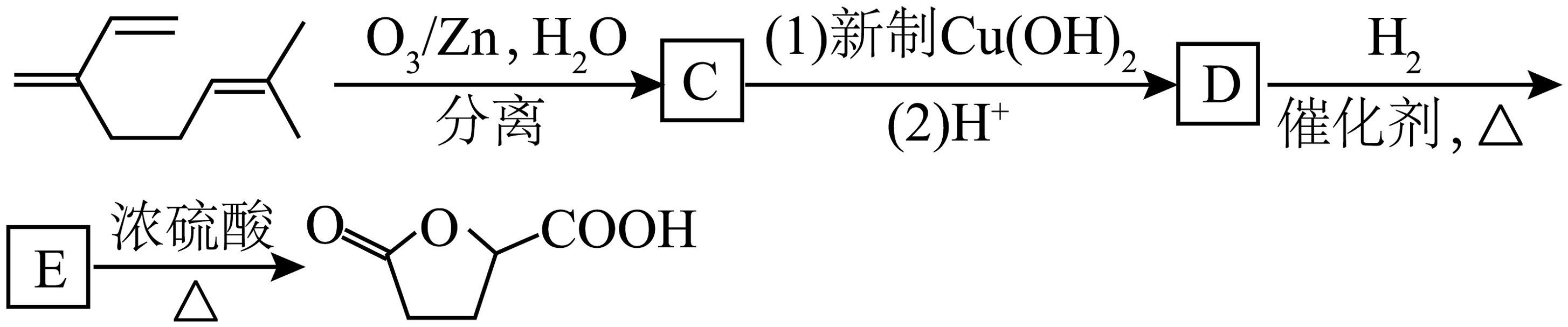 (3)、烯烃臭氧化还原水解反应生成羰基化合物:一定条件下,月桂烯可实现如图所示转化(图中部分产物已略去):