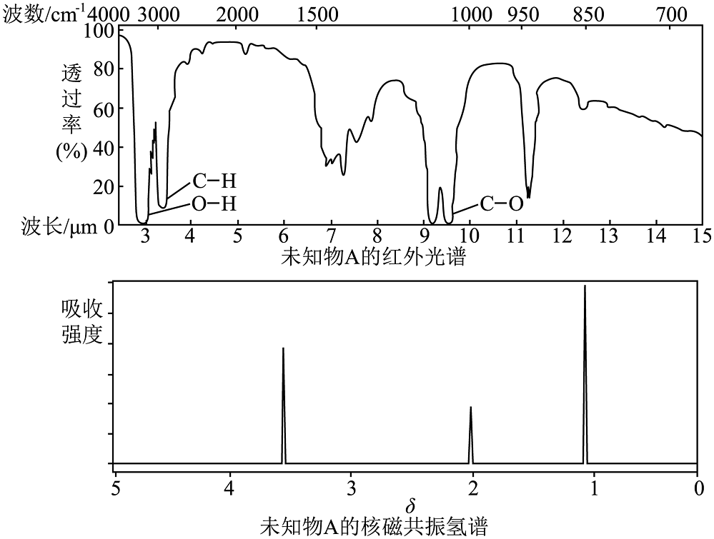 20、已知某有机物的红外光谱和核磁共振氢谱如下图所示,下列说法中错误的是A、仅由其核磁共振氢谱可知其分子中的氢原子总数 B、若的化学式为 , 则其结构简式为 C、由红外光谱可知,该有机物中至少含有三种不同的化学键 D、由核磁共振氢谱可知,该有机物分子中有三种不同的氢原子且个数比为