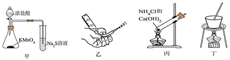9、下列实验操作正确的是( )。A、用图甲证明氧化性 B、图乙操作可排出盛有溶液滴定管尖嘴内的气泡 C、用图丙制备 D、用图丁制备胆矾晶体