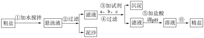 操作③按a、b、c顺序依次加入过量的试剂。若a为NaOH溶液,则c为。