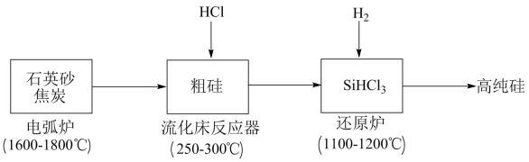 (3)、还原炉中发生的化学反应方程式为:。(4)、上述工艺生产中循环使用的物质除Si、SiHCl3外,还有。(5)、工艺师常用氢氟酸来雕刻玻璃,该反应的化学方程式为。(6)、若还原炉中有氧气混入,会造成的不良后果有(答一点即可)。 -