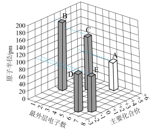4、短周期主族元素A、B、C、D、E的原子序数依次增大,原子半径、主要化合价和最外层电子数关系如图所示。