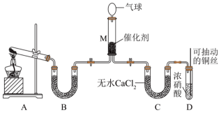 (1)、图2中的N对应图1中物质的化学式为。(2)、X与Z反应中氧化剂与还原剂的物质的量之比为。(3)、Na2SO3溶液易被氧化成Na2SO4 , 检验Na2SO3溶液是否变质的试剂为。(4)、铜和M的浓溶液反应生成Z的化学方程式为。(5)、Ⅱ.氮氧化物(NOx)是大气污染物之一,处理NOx对于环境保护具有重要的意义。在一定条件下NH3可将NO2还原。甲同学在实验室对该反应进行了探究。实验设计如图(部分夹持装置省略)。