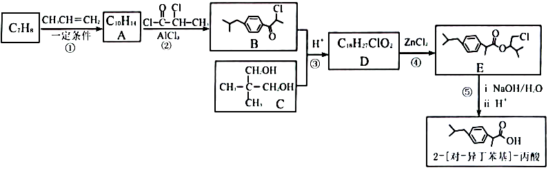 9、2-[对一异丁苯基]-丙酸具有解热、镇痛、抗炎的作用,其合成路线如下。