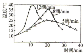 (3)、步骤Ⅰ中,次氯酸钠溶液要在冰水浴冷却下逐滴加入,勿使氧化反应进行得过于猛烈而升温过高,否则产物环己酮将进一步被氧化而发生碳链断裂.在次氯酸钠的不同滴加速度下,在冰水浴存在的情况下,溶液温度随滴加时间变化曲线如右图,为了控制好反应温度,应选择的滴速为滴/ .(4)、在步骤Ⅱ中,加入适量亚硫酸氢钠溶液的目的是(用离子方程式表示) .(5)、在步骤Ⅳ中,加入精制食盐的目的是 .(6)、在步骤Ⅴ中,加入无水的作用为 .(7)、产品的产率为(精确至0.1%). -