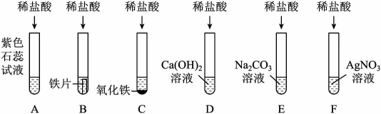 10、为探究盐酸的化学性质,某化学小组做了如下实验:(1)、下列编号为A~F的反应中,无论稀盐酸过量还是少量均无明显现象的是(填字母编号),C中所发生反应的离子方程式为。(2)、G是向稀盐酸中逐滴加入一定量溶液(见图),充分反应。将G中所得溶液、上题D中所得溶液倒入一个洁净的烧杯H中,观察到烧杯中先有气泡产生,且有白色沉淀出现。