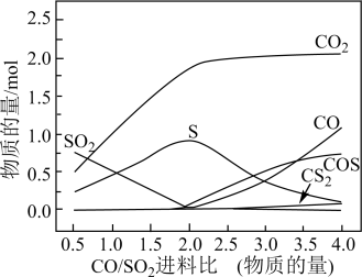 ①该条件下,为减少有毒物质COS的产生,同时脱除SO2 , 实际生产中应控制进料比为 , 在进料比大于2.5之后,COS的含量会明显增大,试分析原因。