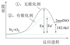 (1)、上述反应中属于放热反应的是(填序号,下同),属于吸热反应的是。(2)、2 g H2完全燃烧生成气态水,放出的热量为。(3)、请写出O2与H2S反应生成S的热化学方程式。(4)、根据下图写出热化学方程式。(5)、加入催化剂该反应的反应热是否发生了改变(填“是”或“否”)。 -