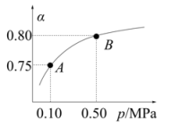 (1)、反应②是(填“吸热”或“放热”)(2)、某温度下反应①中H2的平衡转化率(α)与体系总压强(p)的关系如右图所示,则平衡状态由A变到B时,平衡常数K(A)K(B)(填“>”、“<”或“=”)。根据反应①和②可推导K1、K2与K3之间的关系,则K3 =(用K1、K2表示)