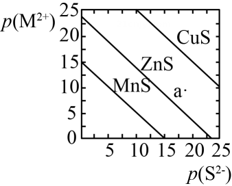 16、已知。三种金属硫化物在水中的沉淀溶解平衡曲线如图所示。下列说法错误的是( )A、a点没有ZnS沉淀生成 B、可用MnS除去MnCl2溶液中混有的少量ZnCl2 C、向CuS悬浊液中加入少量水,平衡向溶解的方向移动,达到新平衡后增大 D、CuS和MnS共存的悬浊液中,